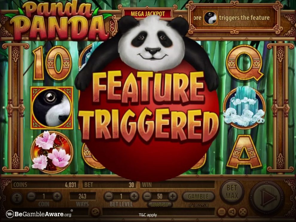 Wie houdt er niet van een panda! De vormgeving van dit spel is absoluut ongelooflijk, met de rollen voor een enorme waterval, omgeven door roze bloesems aan de bomen en bonsai. Het rooster zelf ziet er van hout uit, waarbij elk symbool ook een houten rand heeft om het af te bakenen van de droomachtige achtergrond. Panda’s – die in dubbele symbolen kunnen worden gesplitst, vazen, bloemen, riet, en lampionnen zijn enkele symbolen om naar uit te kijken. Zorg ervoor dat je 3 of meer panda’s landt om de bonusfunctie te activeren in dit spel, dat 243 verschillende manieren heeft om te winnen.