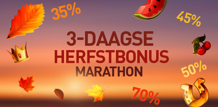 De herfst is officieel begonnen dus is het ideale moment aangebroken om in de prijzen te vallen bij 777.be. Daarom organiseren wij een extra speciale 3-daagse herfstbonus marathon die je zeker niet wil missen!