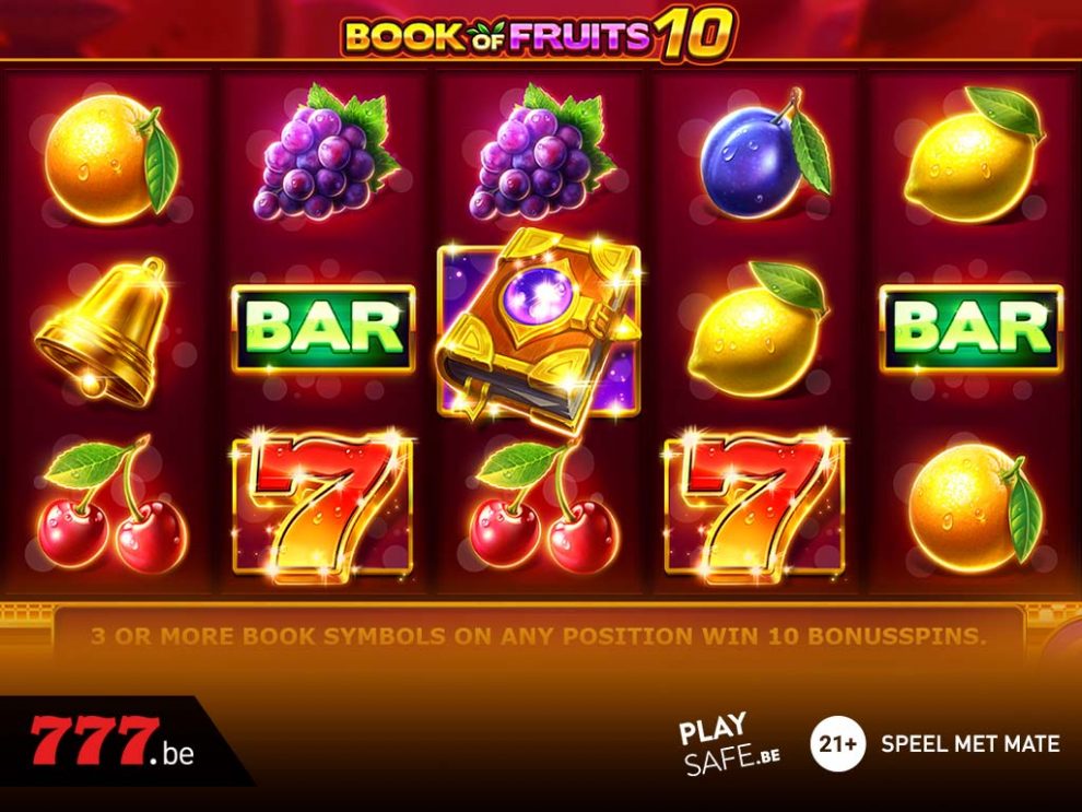 Book of Fruits is een klassieke fruitslot met een raster vol goud. Zelfs de symbolen glimmen van een gouden gloed, waardoor ze echt opvallen tegen de dieprode achtergrond. Schitterend weergegeven, is het Book-symbool ook de Wild, die tot x30 bonus gratis spins biedt wanneer hij wordt geland. Lucky 7’s zijn de blinkende Golden scatters, en uitbreidende symbolen garanderen bovendien een aantal grote winsten.
