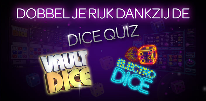 Jij kiest je strategie in onze dice spellen en speelt jezelf zo naar de hoogste winst. Dit kun jij ook doen in de speciale Dice quiz die wij deze week organiseren. Weet jij deze uitdaging goed te volbrengen dan verdien jij een riante bonus van 30%!