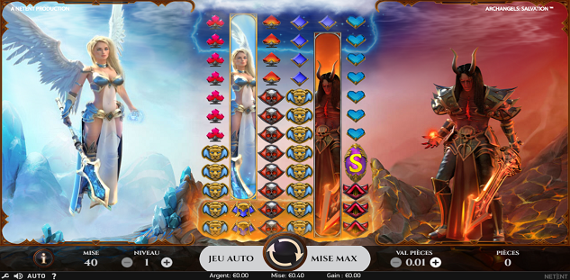 Hoewel videoslots met bijbelse karakters vaak gemengde gevoelens bij veel spelers van onze website brengen, is het duidelijk dat dit te wijten is aan het feit dat het christendom in het echte leven niet echt geschikt is voor online casino spellen. De gloednieuwe slotmachine Archangels Salvation, ontwikkeld door NetEnt, is ook ontworpen in religieuze stijl, maar gelovigen kunnen niet echt zeggen dat het hun gevoelens of overtuigingen schaadt. Inderdaad, het hoofdthema van deze slot draait om twee helden: een aartsengel uit de hemel en een demon uit de hel. Deze twee beginnen een gevecht, en hoe dat afloopt zal je zelf moeten ontdekken door op het spel te spelen. Met 6 rollen en 100 betaallijnen nodigt online-games ontwikkelaar NetEnt je uit om deel te nemen aan de mythische strijd van goed tegen kwaad … en misschien om wat mooie winsten te incasseren terloops …