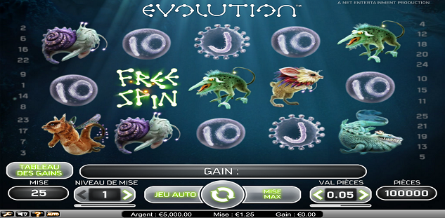 Evolution is een slotmachine met 5 rollen en 25 betaallijnen die je de mogelijkheid bieden om te spelen met munten met een waarde tussen €0,01 en €0,50. Het grote voordeel hiervan is dat dit spel gericht is op elk budget en dat je tot 10 munten per betaallijn kan spelen om een winst van maximum €125 per draai te halen. Helaas heeft deze slotmachine geen winstvermenigvuldigingen, maar om dat goed te maken, kan je genieten van talrijke voordelen die toegevoegd zijn aan de scatter, en vooral, de wild symbolen. Je kan je winkansen aanzienlijk verhogen dankzij de vele gratis spins en een nieuwe bonus waarmee je nog een beetje meer kan genieten van de veranderingen van deze NetEnt evolutie. Ook al is de sfeer in het spel misschien wat verontrustend, iets dat je niet meteen vrolijkheid brengt, zijn de graphics indrukwekkend voor een online slotmachine en beschikt het spel over talrijke interessante functionaliteiten en mogelijkheden. Als je meer houdt van cartoons en plezier, lees dan verder en ontdek ons tweede slotspel: Fisticuffs.