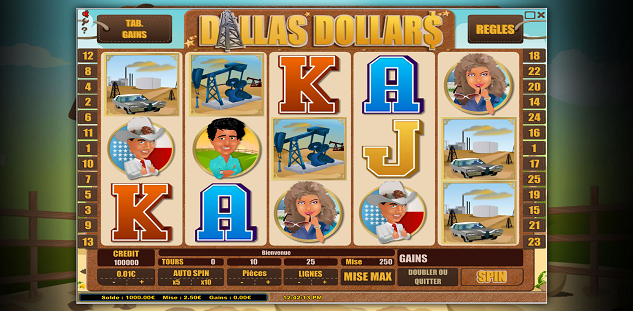 De Dallas Dollars slotmachine beschikt over 5 rollen en 25 betaallijnen. Om toegankelijk te zijn voor alle budgetten, staat deze machine je toe om de waarde van de munten te wijzigen om te komen tot een waarde tussen €0,01 en €0,10. Net zoals de vorige slot van iSoftBet, kan je hier ook het aantal actieve lijnen kiezen, en daarbovenop ook het aantal munten dat je op elke lijn wil inzetten zodat je je winsten aanzienlijk kan verhogen. Je krijgt een beloning van 10 gratis spins, en terwijl je met deze speelt, worden je winsten verdubbeld als je uitkomt op 3 Scatters die eender waar kunnen verschijnen, en tegelijkertijd kan je ook een jackpot van 200.000 munten winnen als je 5 Wild symbolen op één actieve betaallijn verkrijgt tijdens dit evenement.
